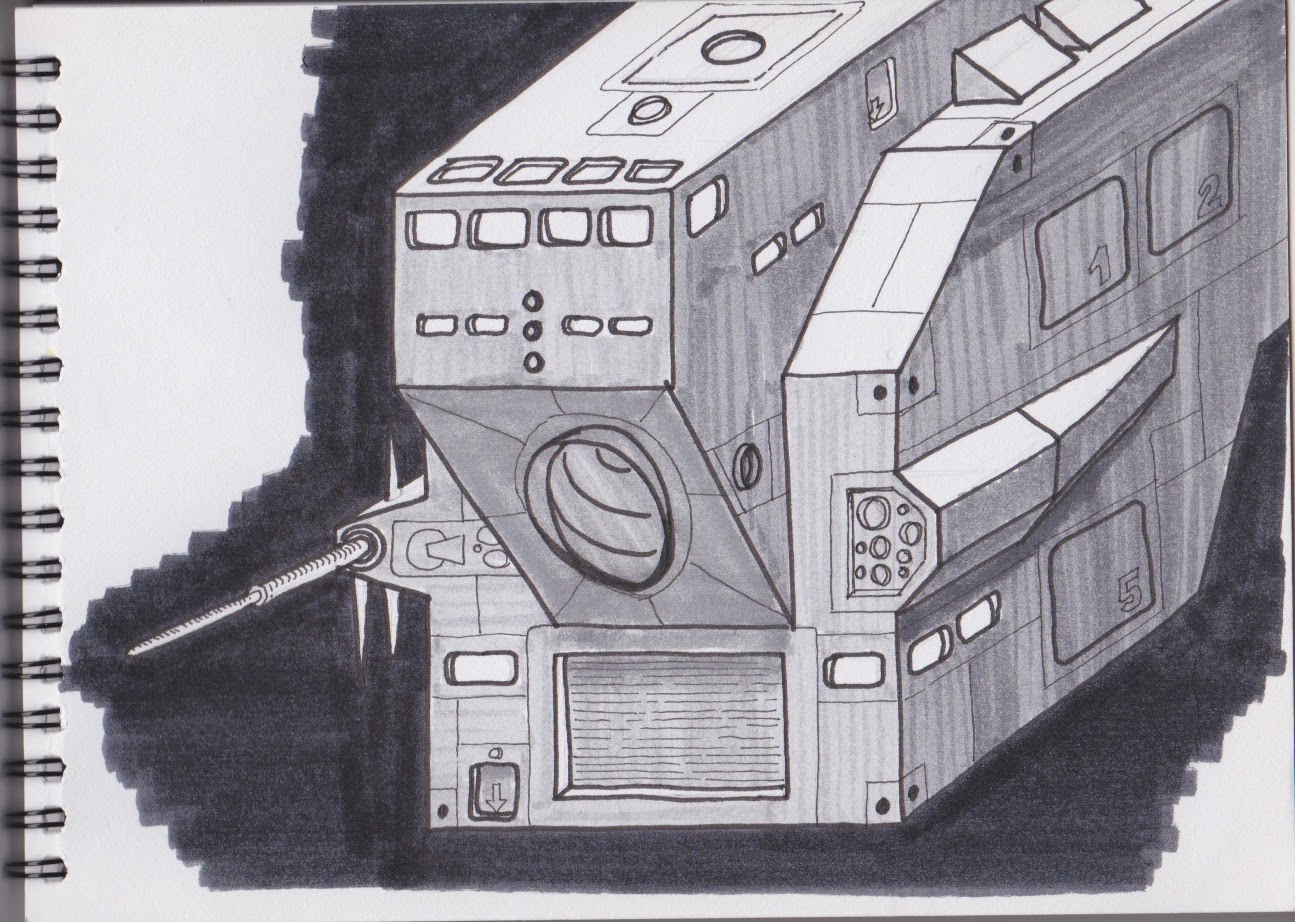 Sketches in development of a new original paper model: A container ship to freight around standardized box containers from earth to space. Perhaps a part of the Capul Universe models I made found on www.ecardmodels.com or a new line.